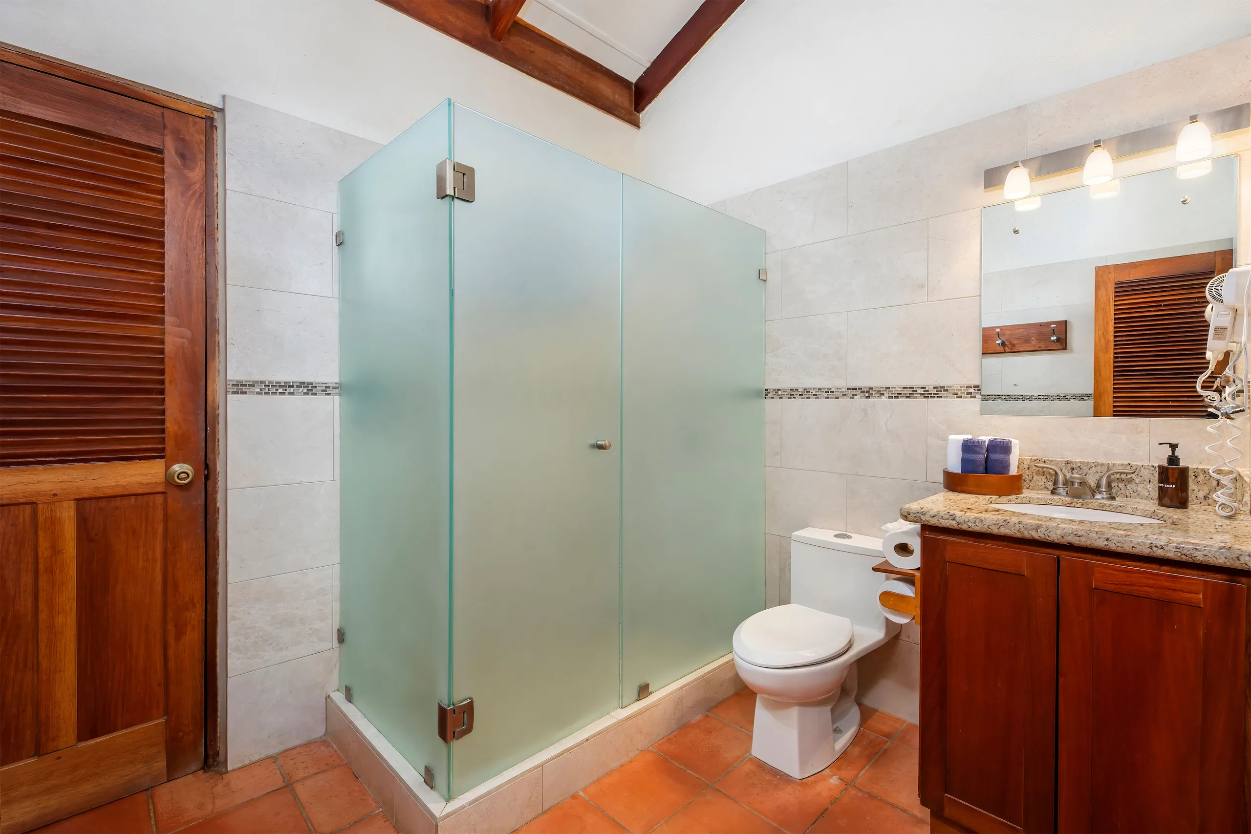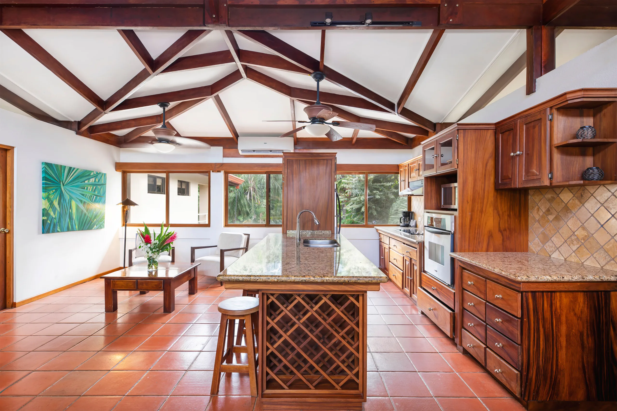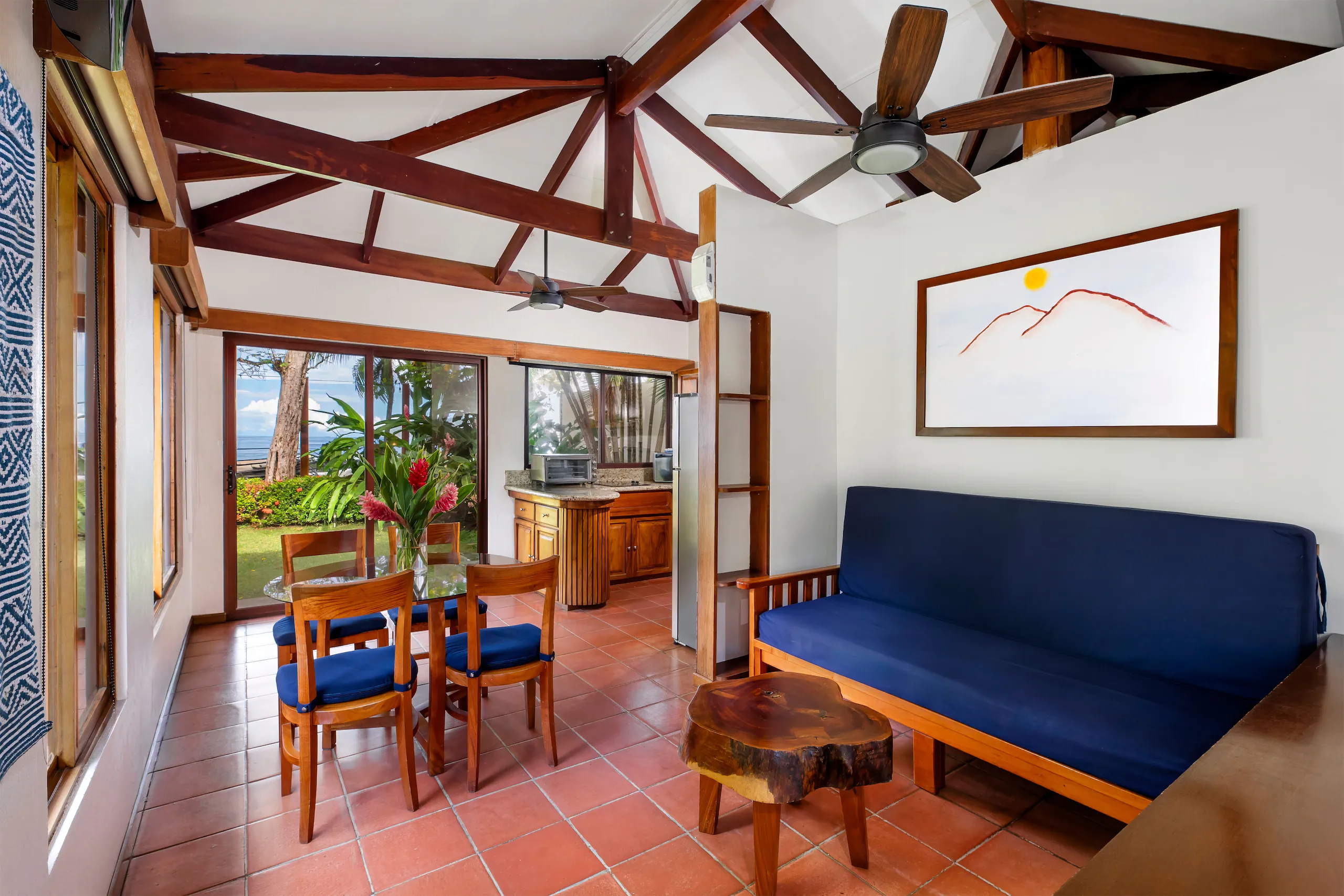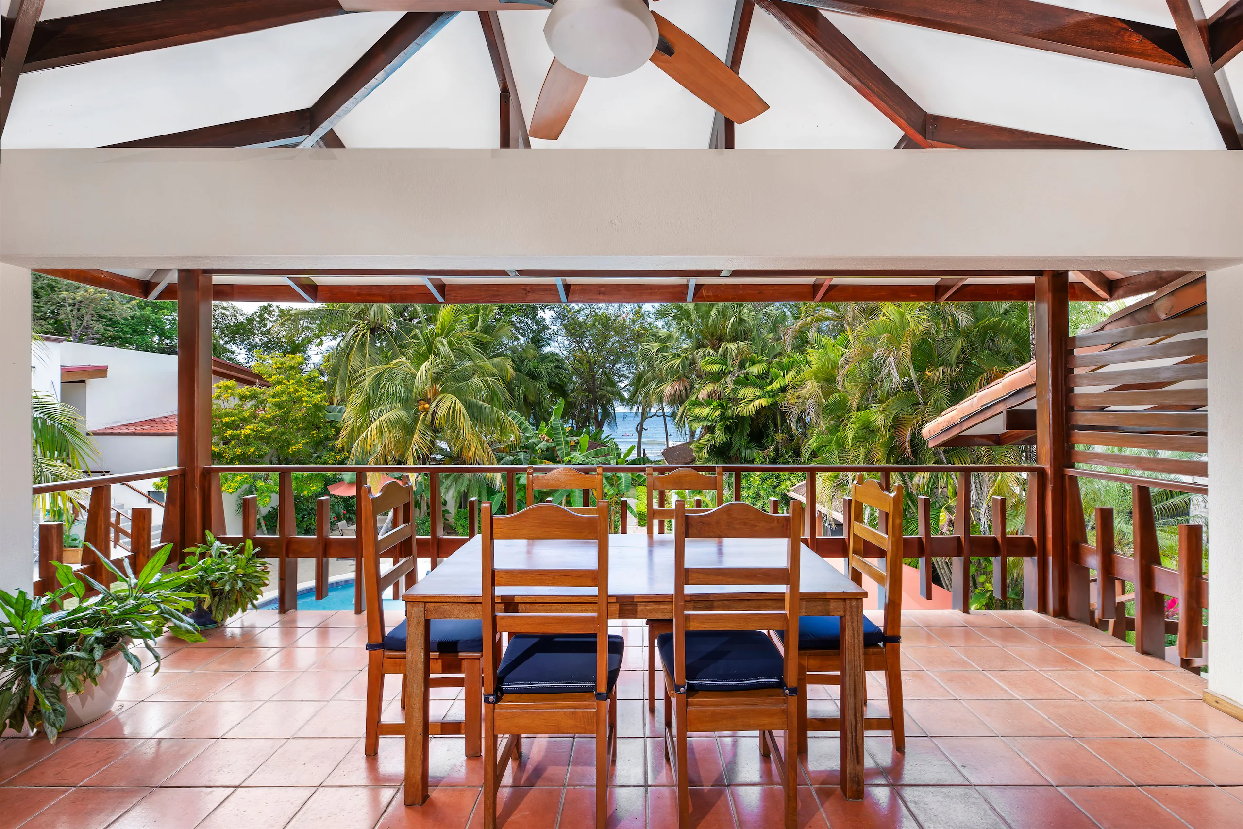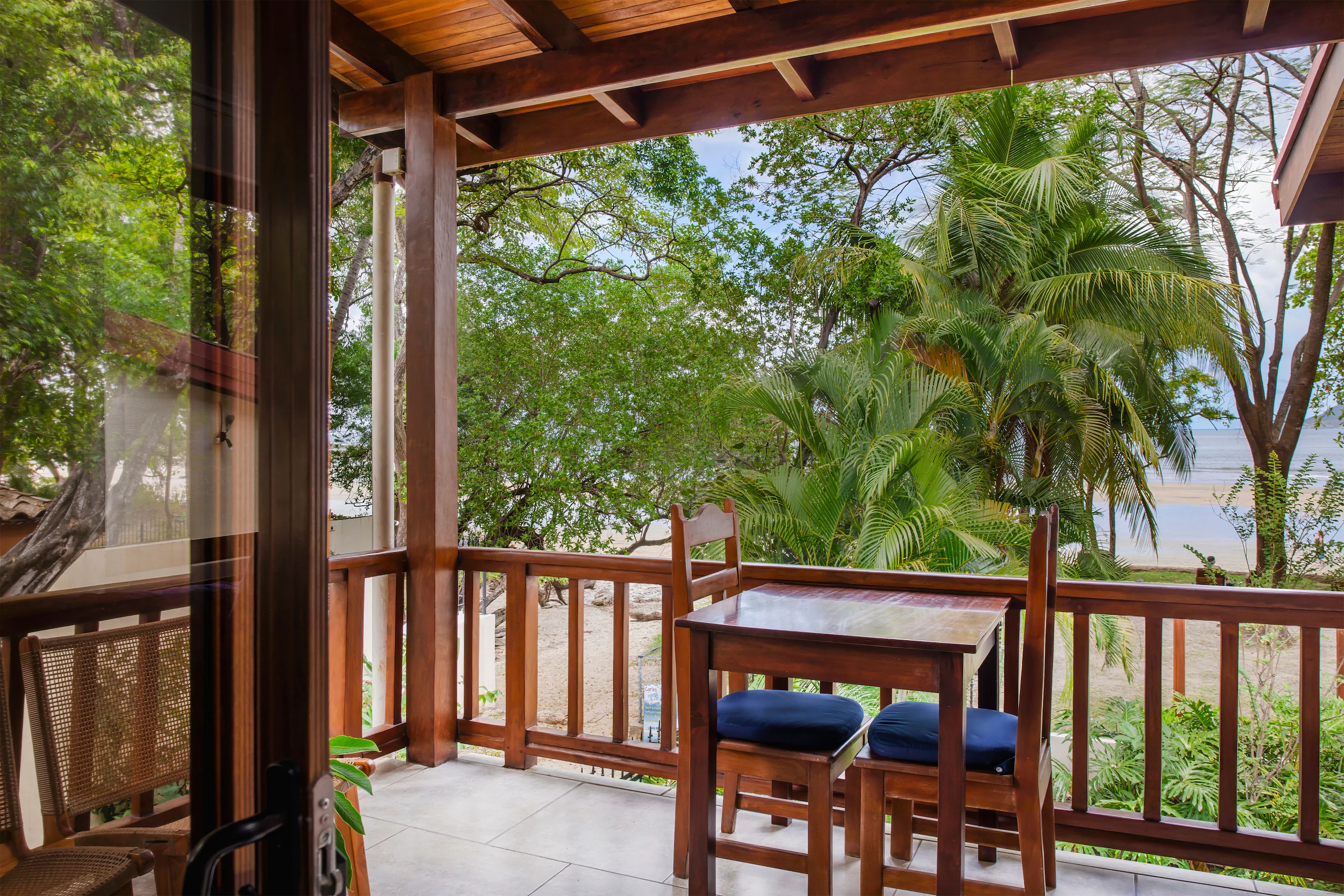 This unit faces the pool with an ocean view and has a large balcony dining area. It has 2 bedrooms, each with a private bathroom. These rooms have a queen size bed and a flat-screen TV. The living room is very comfortable, it offers a queen size sofa bed and the kitchen is fully equipped.